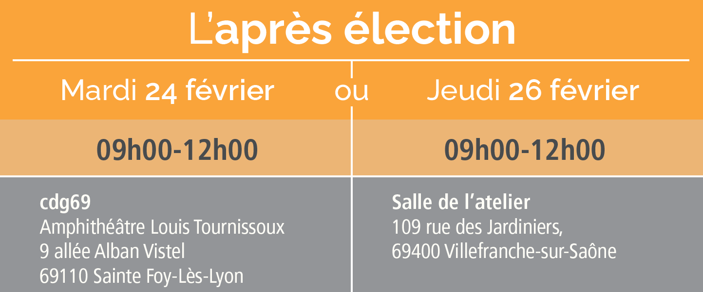 Après deux sessions d’information en partenariat avec le bureau des élections de la préfecture du Rhône et la Métropole de Lyon sur « l’avant élection » et « le jour du scrutin », le cdg69 vous propose une dernière réunion visant à présenter les premières mesures à prendre dès l’élection des nouvelles assemblées communales et communautaires.