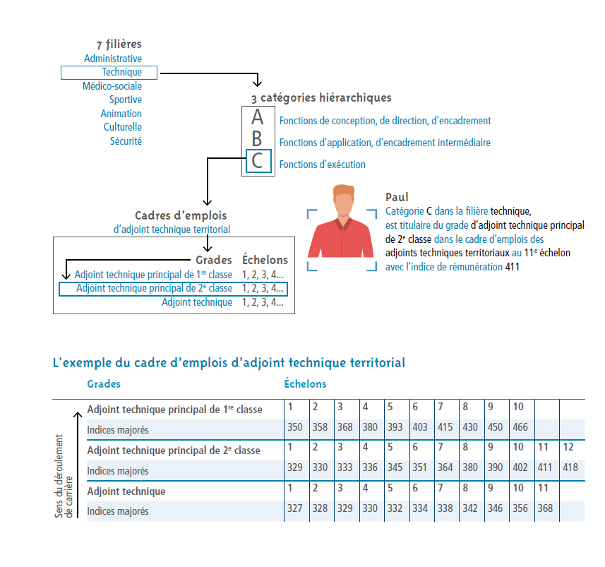 Cette hiérarchie sert principalement à définir : le niveau de responsabilité et les missions de l’agent, les conditions d’accès à l’emploi, la rémunération, les possibilités d’avancement et de mobilité professionnelle.