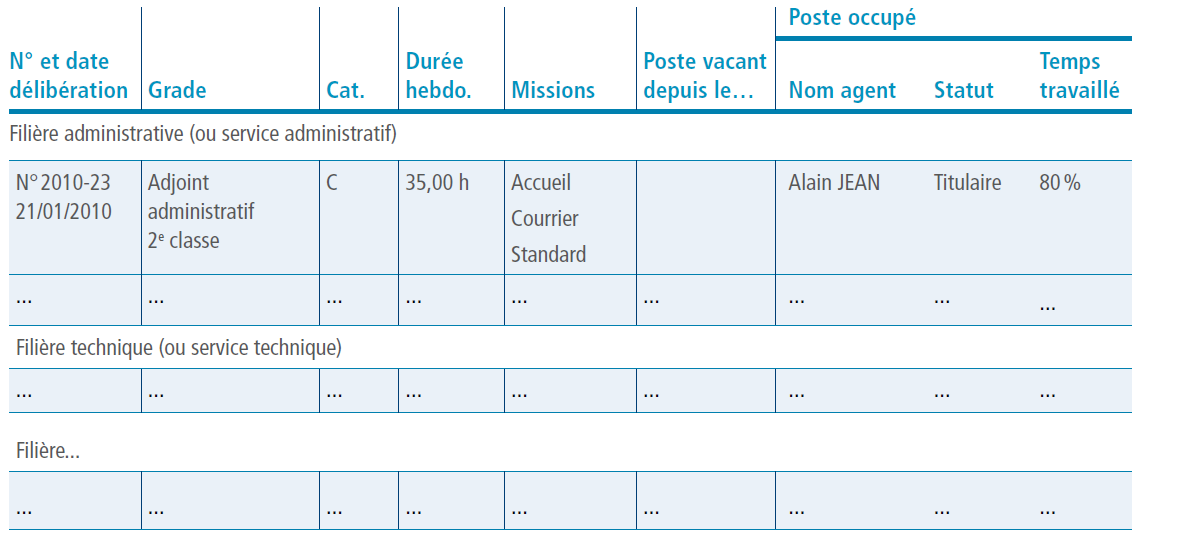 Chaque année, le maire a l’obligation de joindre au compte administratif un tableau présentant la liste des emplois permanents existants dans la commune. Il s’appelle le « tableau des effectifs ».