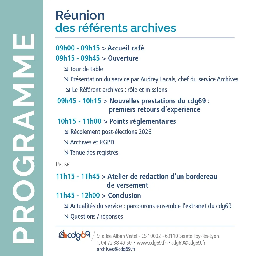 Le service Archives du cdg69 organise une réunion des référents archives :